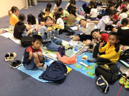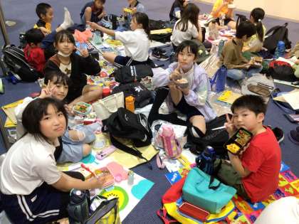 友達と食べるお弁当は、いちだんとおいしいですね。