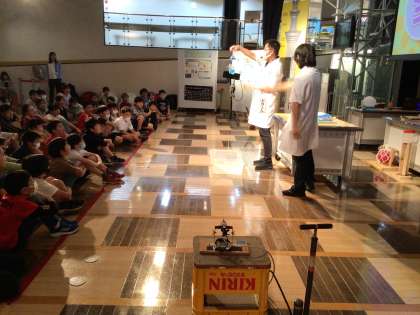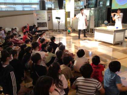 とよた科学体験館では、プラネタリウムとサイエンスショーを観ました。プラネタリウムでは、月の形や動き、星座について教えていただきました。最後の宇宙旅行に子ども達は大興奮でした。サイエンスショーでは、想像以上の空気の力に驚きました。
