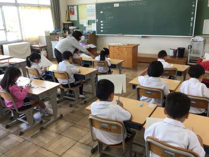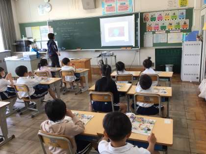 1年生の図工では、正しいハサミの使い方を学習しました。ケガをしないように安全にハサミを使う等、ハサミを使う時の約束を確認しました。ハサミを使って「ちょきちょきかざり」をつくります。