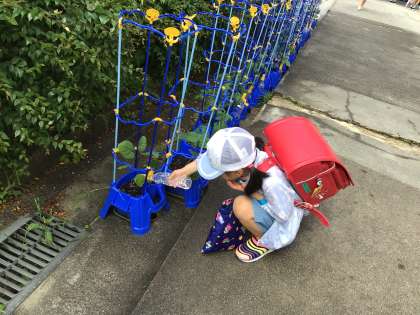 5/20 朝のひととき 公開日 2024/05/20 更新日 2024/05/20 各学年から 週明け登校してくると、昇降口前にある野菜の鉢に水やりをする子どもたちの姿がありました。ナスやトマト、ピーマンが植えられていると教えてくれました。