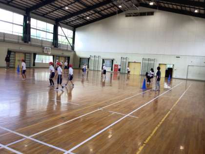 総合スポーツのクラブでは、体育館でボールの数を増やしてドッチボールを行っていました。