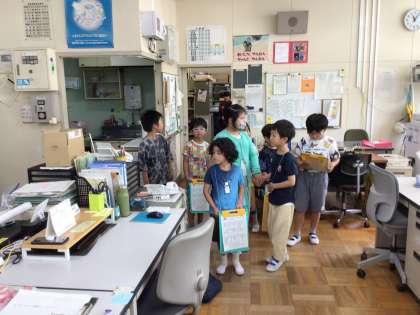 5/21 1、2年生 生活科 学校探検2 公開日 2024/05/21 更新日 2024/05/21 各学年から 2年生が1年生を連れて学校探検に行きました。校長室、職員室、保健室、理科室等たくさんの教室を案内し、説明する2年生の姿がとても立派でした。