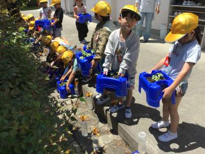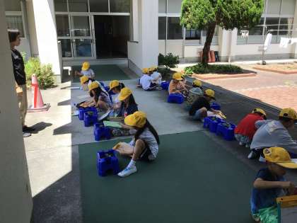 5/21 1年生 生活科 公開日 2024/05/21 更新日 2024/05/21 各学年から 生活科で育てている「あさがお」の芽が大きくなりました。植木鉢を持って、日陰に移動して観察します。「ふたばのかたちを よく見てかこう」というめあてです。みんなよく見て描くことができました。