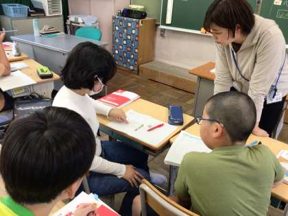 5/21 6年算数 公開日 2024/05/21 更新日 2024/05/21 各学年から 6年算数では、分数✖️分数の計算の仕方について学習していました。少人数(3グループ)に分かれて実施しています。これからよく使う計算方法なのでしっかり練習をしていきましょう。