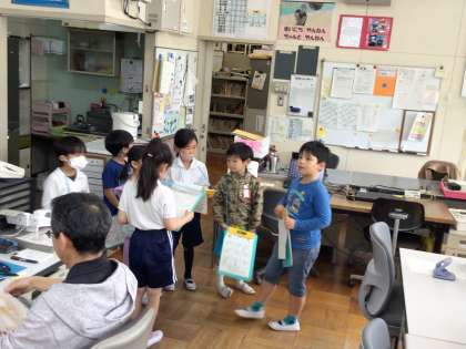 5/23 学校探検1 公開日 2024/05/23 更新日 2024/05/23 各学年から 今日の1、2限は学校探検です。2年1組の子たちが1年1組の子たちを連れて、校長室、職員室、理科室をはじめとした特別教室を探検(案内)していました。