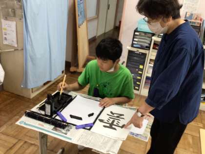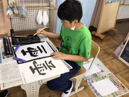 5/23 7・8組書写 公開日 2024/05/23 更新日 2024/05/23 各学年から 7・8組の書写では、画数の多い「雲」にチャレンジしました。手本をよく見ながらていねいに書き上げました。あめかんむりも難しいけれど、「云」の部分が難しかったと話していました。
