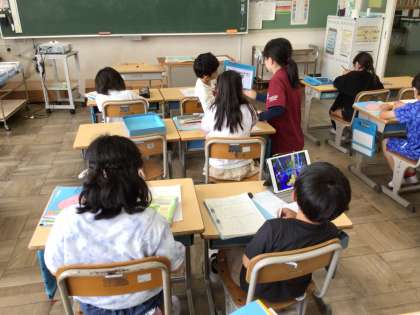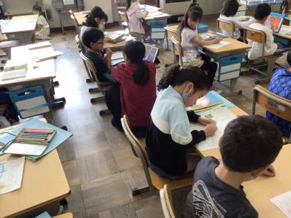 2年生の生活科では、野菜を育てています。オクラや、ミニトマト、ピーマン等いろいろな野菜の成長を、絵日記にまとめました。