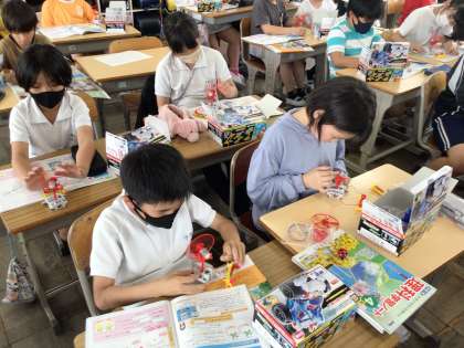 4年理科では、電池のはたらきについて一人一人実験をしながら気づいたことを発表していました。発表された意見が合っているかどうか再度実験をして確認していました。