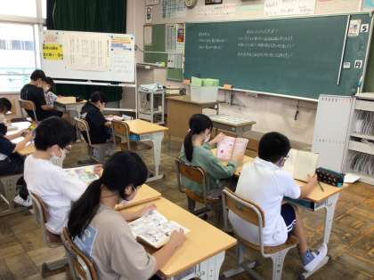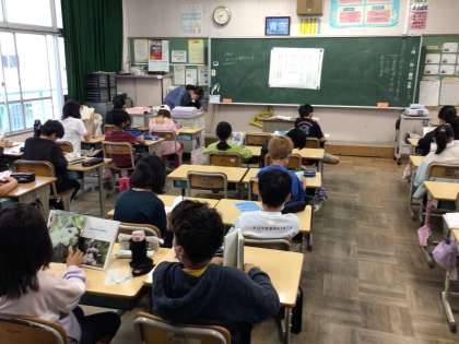 時間になると静かに読書を始めています。落ち着いた週の始まりがいいですね。