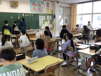 5/27 6年生 学級活動 公開日 2024/05/27 更新日 2024/05/27 各学年から 6年生の学級活動では、自分たちで司会をしたり、黒板に意見を書いたりしながら、話し合いを進めることができています。グループで話し合ったことも発表しました。