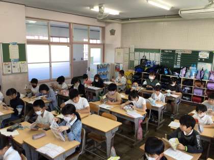 時間になると静かに始められる朝の読書。平井小学校は8時30分を過ぎると本当に静かになります。たくさんの本に親しんでくださいね。
