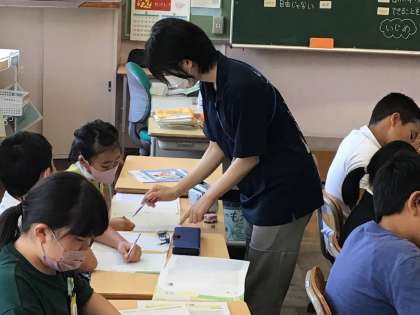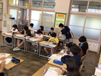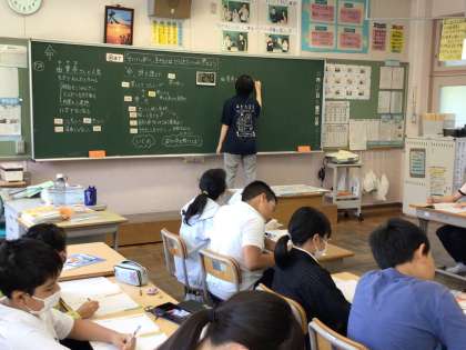 5年道徳では、「せいいっぱい」生きるにはどうしたらいいか考えようというめあてで進めていました。先生の問いかけに対して、自分の考え方をしっかりとノートに記入していました。