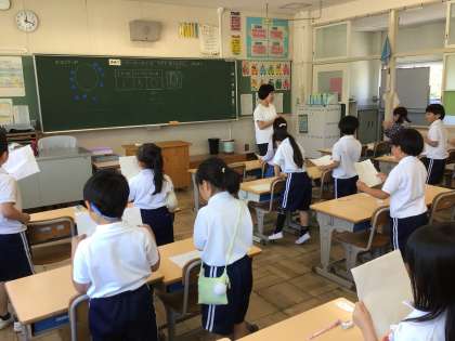 1年生の算数で、「10」はいくつといくつに分かれるかを、リズムに合わせて手拍子しながら、楽しく学習しました。