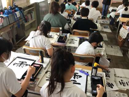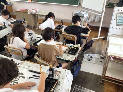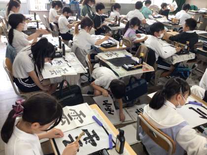 3限の4年1組の書写は「雲」の清書です。今まで習った注意点を確認した後、夢中になって書き上げていました。