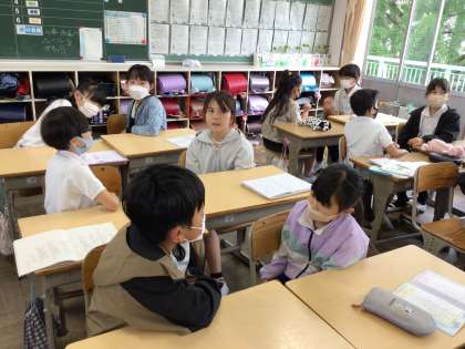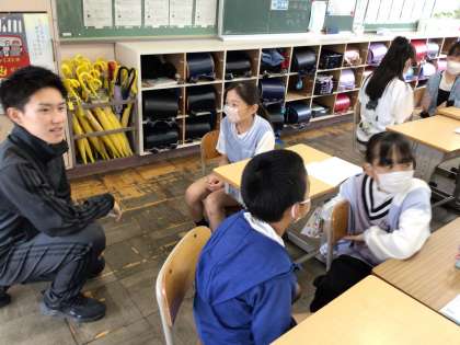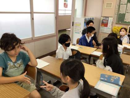じゃんけんをして互いに質問し合っています。朝から結構盛り上がっています。