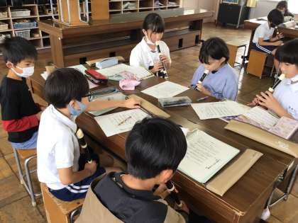 5/31 4年音楽 公開日 2024/05/31 更新日 2024/05/31 各学年から 4年音楽では、リコーダーをグループごとで練習をして、互いの音を聴き合うことを意識した演奏ができるようになってきました。「いいこと ありそう」も楽しいリズムを感じて歌うことができました。