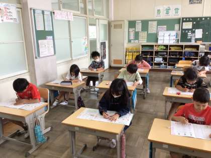 今日の2年生書写では、画のつきかたと交わり方に気をつけて書くことを目標に学習しました。みんな姿勢よく、集中して取り組むことができました。