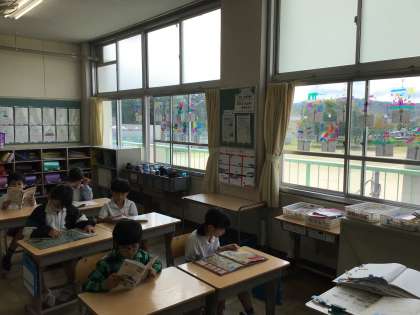 時間を見て着席をして静かに読書が始まります。時間を意識して行動ができることは当たり前ですが、とても大事なことです。