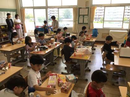 6/3 1年生 算数1 公開日 2024/06/03 更新日 2024/06/03 各学年から 今日の1年生算数の授業参観では、いろいろな形の箱を組み合わせて動物や乗り物を作りました。家でいろんな箱を用意していただき、ありがとうございました。