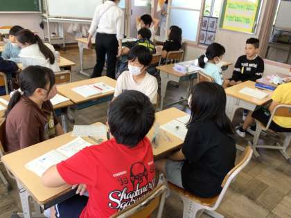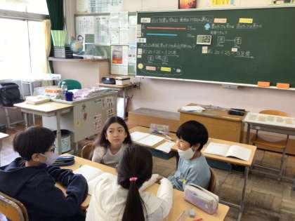 5年2組の算数では、「もとにする量が変わると何倍になるか調べよう」というめあてで、割合の学習を進めていました。
