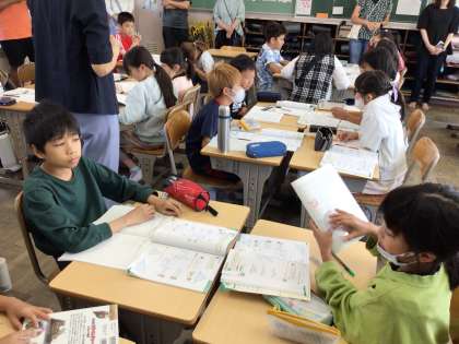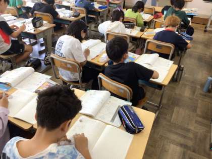 6/3 4年算数 公開日 2024/06/03 更新日 2024/06/03 各学年から 4年2組の算数では、「分度器を使って角をかこう」というめあてで,角とその大きさについて学習を進めていました。200度ってどうやってかくんだろう…話し合って考えていました。