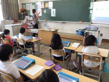 2年生の算数「長さくらべ」では、「りす」と「うさぎ」のこぶしを基準に長さを測るといくつ分かを考えました。測る基準を同じものにしないと、正確に測ることができないことに気づきました。