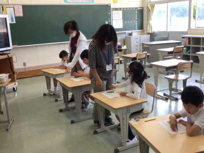国際学級では、算数のまとめのテストをしました。一人一人集中して学習しています。