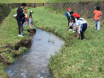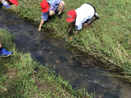 川辺に生息している生き物を発見して大興奮。生き物がいっぱい生息している素敵な岩本川をこれからも大切にしていきたいですね。