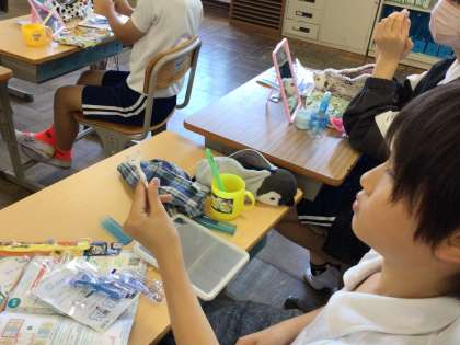 6/4 6年ライオン歯みがき大会 公開日 2024/06/04 更新日 2024/06/04 各学年から 6年1組では、映像を見ながらライオン歯みがき大会を実施していました。歯みがきの方法だけでなく、デンタルフロスを使った歯と歯の間、磨き残しが多くなる部分の磨き方についても実施していました。