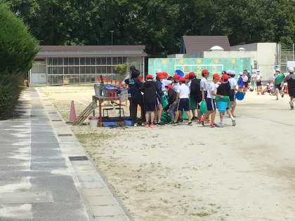 6/4 全校草取り1 公開日 2024/06/04 更新日 2024/06/04 特別活動 今日は、掃除の時間にやまびこ班に分かれて、草取りをしました。各班の6年生を中心に、草があるところに移動して、バケツ等に草をたくさん入れることを目標に取りました。