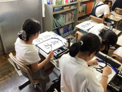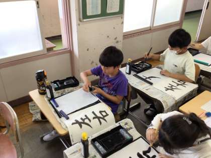 今日からは2文字に挑戦します。「左右」という字になります。書き順を確認しながら半紙の上下バランスよく書く練習を始めました。