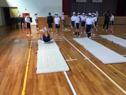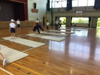 6/5 6年体育 公開日 2024/06/05 更新日 2024/06/05 各学年から 1限に体育館で6年は跳び箱とマット運動を実施していました。前回見かけたときよりも技の難易度が上がっていましたが、一生懸命練習をしていました。三俣先生もマット運動やっていました。すごいですね。
