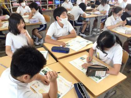 5年理科では、「メダカはどうやって増えるのか考えよう」というめあてで学習を進めていました。挙手発言が大変多いだけでなく、発表者に体を向けて話をきくなど、互いに学び合う姿勢がよいと実感しました。