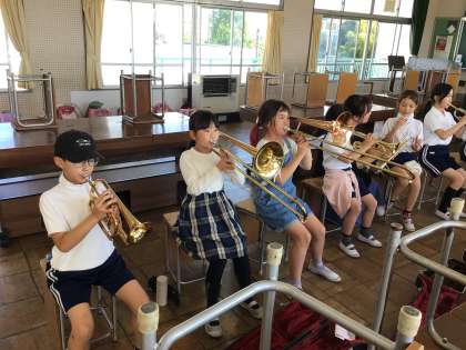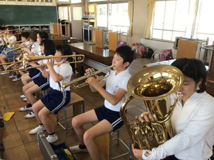 音楽室ではファンファーレの人たちが練習していました。前回見かけたときよりも音の出る音域が広くなっていました。