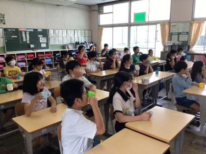 今日からフッ化物洗口が始まりました。朝の会でCDに合わせて口の中をブクブクしていました。取り組みの様子を紹介します。