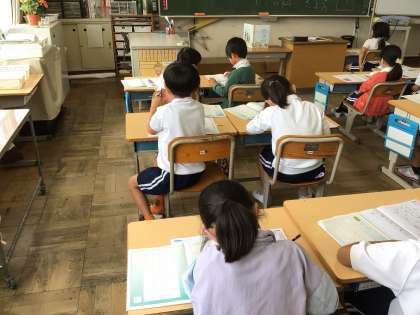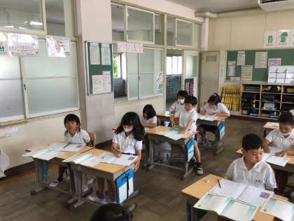 6/6 2年生 書写 公開日 2024/06/06 更新日 2024/06/06 各学年から 今日の2年生書写では、レオ-レオニ作のスイミーの最後の場面の文章をなぞったり、書いたりしました。昨年の国語の教科書に載っていた物語なので、「あ、覚えてる」と言いながら書く姿が見られました。