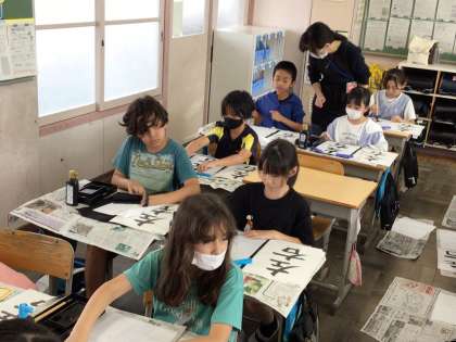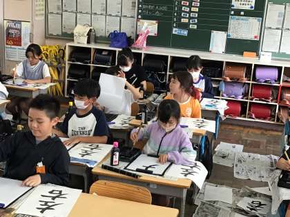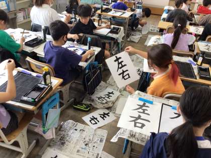 6/6 4年書写 公開日 2024/06/06 更新日 2024/06/06 各学年から 4年書写では、「左右」に挑戦です。今までは1文字だったので、半紙を半分に折り、字の大きさを考えて書く練習をしました。また、書き順についても確認をしてバランスよく書くコツを確認しました。