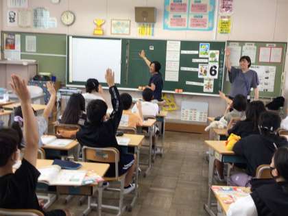 6/6 6年外国語 公開日 2024/06/06 更新日 2024/06/06 各学年から 6年2組の外国語では、エナ先生と一緒にアルファベットのNがつく英単語を学んでいました。大きな声で発音をしながら楽しい授業でした。