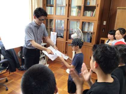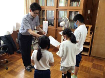 今日のやまびこ遊びの後、「みんなで幸せになりま賞」の表彰が校長室で行われました。10名が受賞しています。おめでとうございます。