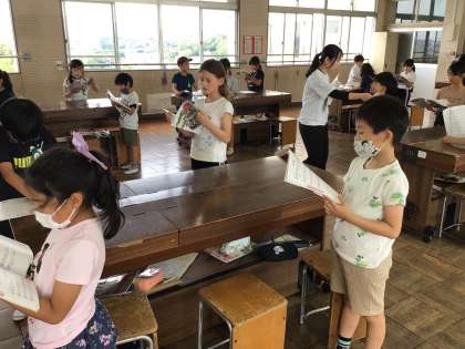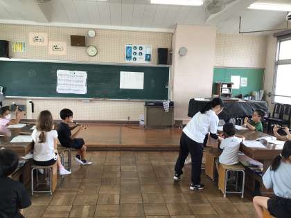 3年音楽では、「友だち」という曲を歌った後、リコーダーの練習をしていました。