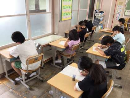 6/7 5年算数 公開日 2024/06/07 更新日 2024/06/07 各学年から 5年2組では、算数のテストを実施していました。授業の中で、グループで学び合ったことや先生の説明をよく思い出しながら解けたかな? 集中して解いている緊張感が伝わりました。