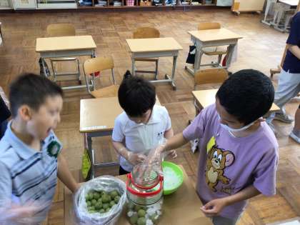 6/10 7・8組 公開日 2024/06/10 更新日 2024/06/10 各学年から 3限7・8組では、梅シロップ作りを始めていました。梅と氷砂糖を手分けして容器に入れていました。おいしいシロップができるといいですね。