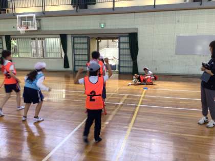 3限は4年2組です。選手にアドバイスをもらいながら一生懸命活動をしていました。