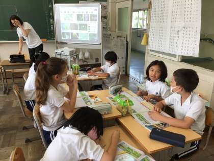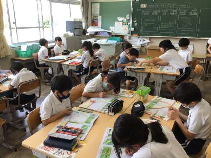 6/11 3年生 理科 公開日 2024/06/11 更新日 2024/06/11 各学年から 3年生の理科ではモンシロチョウの成長の様子を観察しています。今日は、「さなぎ」の観察をグループごとに行いました。入れ物の蓋にさなぎが付いている様子をみている姿が見られました。