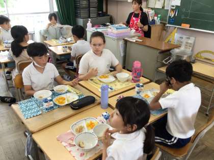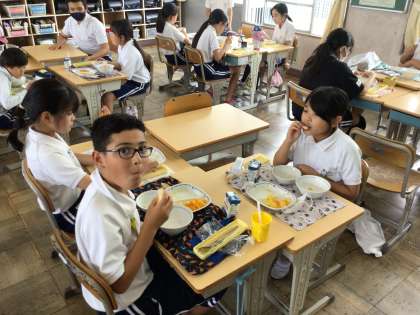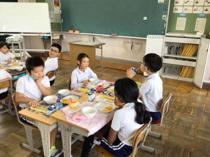 今日は献立はビーフン、ごぼうサラダ、レモンポンチでした。給食の時間に教室をまわると、楽しく会食している様子が見られました。これからどんどん蒸し暑くなっていきますので、しっかり給食を食べることと十分な水分補給に心がけましょう。
