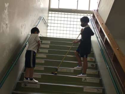 6/11 清掃 公開日 2024/06/11 更新日 2024/06/11 各学年から 清掃の様子です。1年と6年がペアになって清掃を進めています。自分たちの生活の場をきれいに保つことはとても大事なことです。協力をしてきれいにしていきましょう。