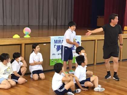 JFAこころのプロジェクト MIRAIへつなぐ「夢の教室」を、3・4限に5年2組、5・6限に5年1組で実施しました。スポーツの現役選手が夢先生として登壇し、「夢をもつことや、その夢に向かって努力することの大切さ」「仲間と協力することの大切さ」などを伝えていただきました。