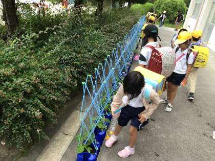 6/13 アサガオの成長 公開日 2024/06/13 更新日 2024/06/13 各学年から アサガオがグングン成長してきているので、植木鉢に支柱が取り付けられました。これならツルがのびてきても安心です。