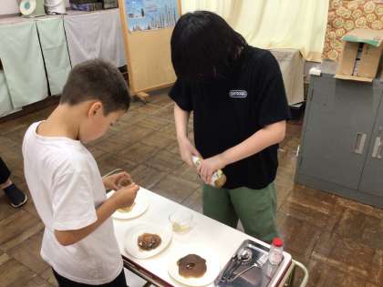 6/13 7組 公開日 2024/06/13 更新日 2024/06/13 各学年から 7組では、インドネシアのお菓子作りをしました。自分で材料を混ぜてホットプレートで焼きました。とても美味しいお菓子ができました。
