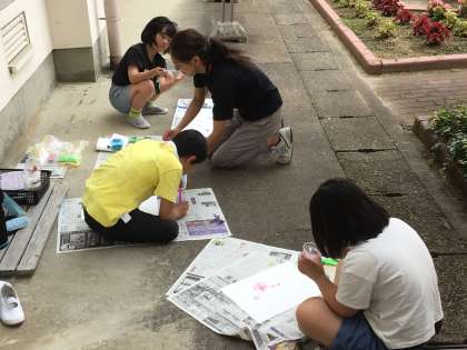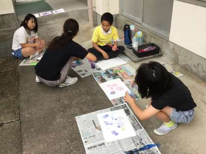 8組図工では、シャボン玉アートであじさいを描きました。絵の具を使ってきれいな色を作ることができました。